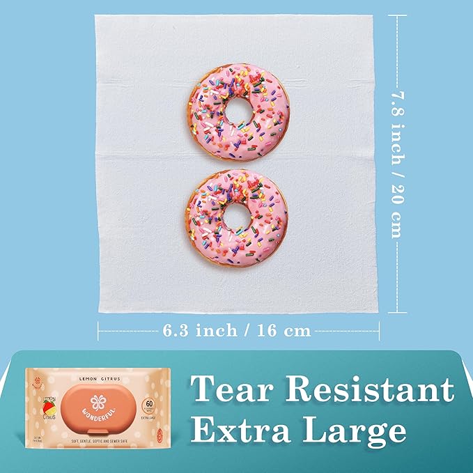 - π SOFT & DURABLE: Enjoy the ultimate in comfort and quality. WONDERFUL Flushable Wipes are super soft on the skin yet sturdy and tear-resistant, offering the perfect combination for your hygiene needs.