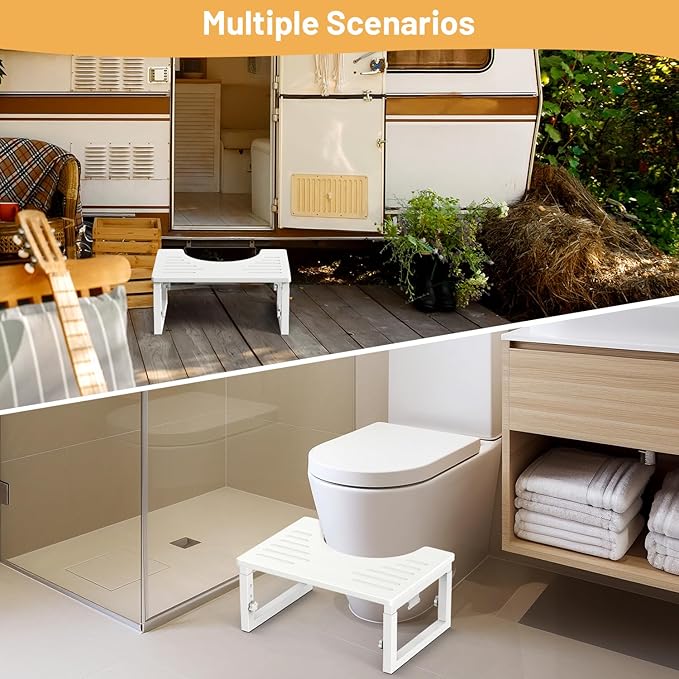 - Easily Folded & Stored: Folds or open pooping stool in only 3s and folded thick only 2.75 inch, storing or carring out it made easier, you can store it easily in the corner of the bathroom or RV. coating process water-proof and easy to clean.