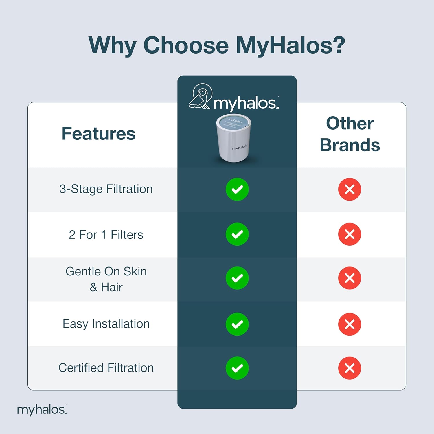 2 Pack - MyHalos® Fixed Hard Water Shower Filter Cartridge Replacement - Home, Travel Power Filtered Shower Head Filter, Chlorine & Heavy Metal Removal - Water Softener, High Pressure- 6 Months Worth