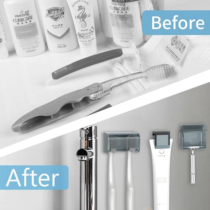 - Product Size: Toothbrush Hanger-2.75" x 1.57" x 1.57" (7X4X4cm), Razor Holder-2" x 1.57" x 1.57"(5X4X4cm) Toothpaste Clip-2" x 1.57" x 1"(5X4X2.5cm)