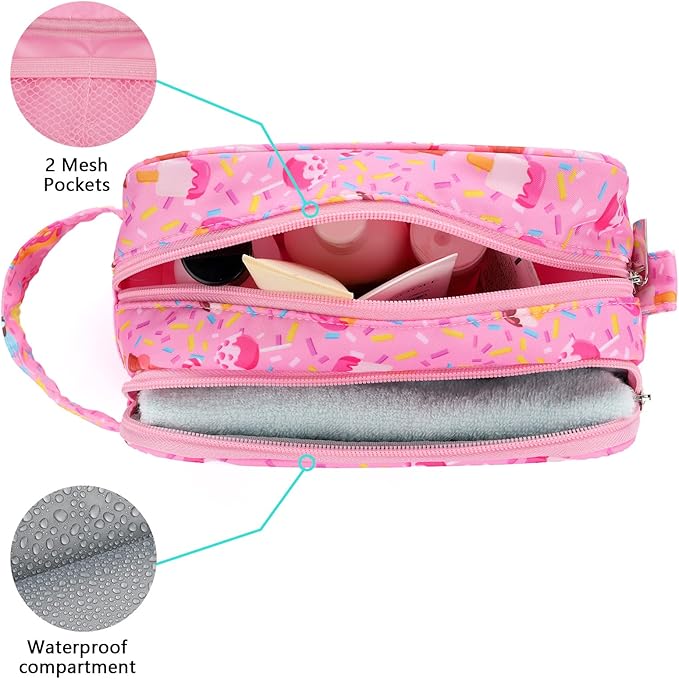 Kids Toiletry Bag for Girls, Travel Toiletry Bag for Little Young Girls Cosmetic Bag Makeup Bag Waterproof Hanging Wash Bag Toddler Toiletries, Candy Pink