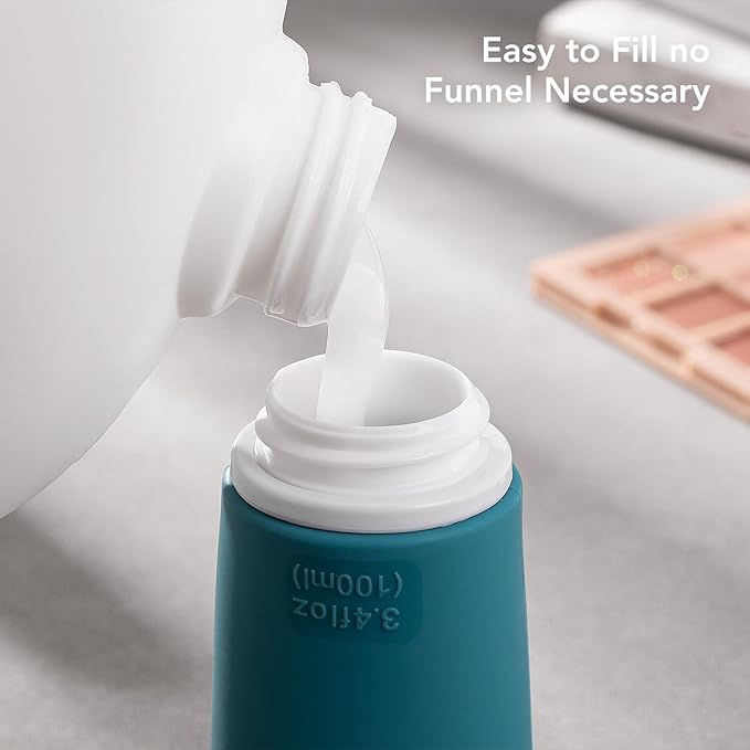 - [Easy to Carry] The 3.4-ounce capacity is adequate to carry liquids for 2-3 weeks of travel time. It is TSA-approved. At the same time, the travel-size containers may stand on both sides, so that storage and placement are more orderly and simpler to use, especially when refilled travel bottles are filled with cooking sauces