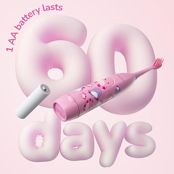 - What's in the Box: 1 x kids battery toothbrush, 1 x extra toothbrush head. 1 x AA battery included, which lasts up to 60 days. Say goodbye to frequent recharging!