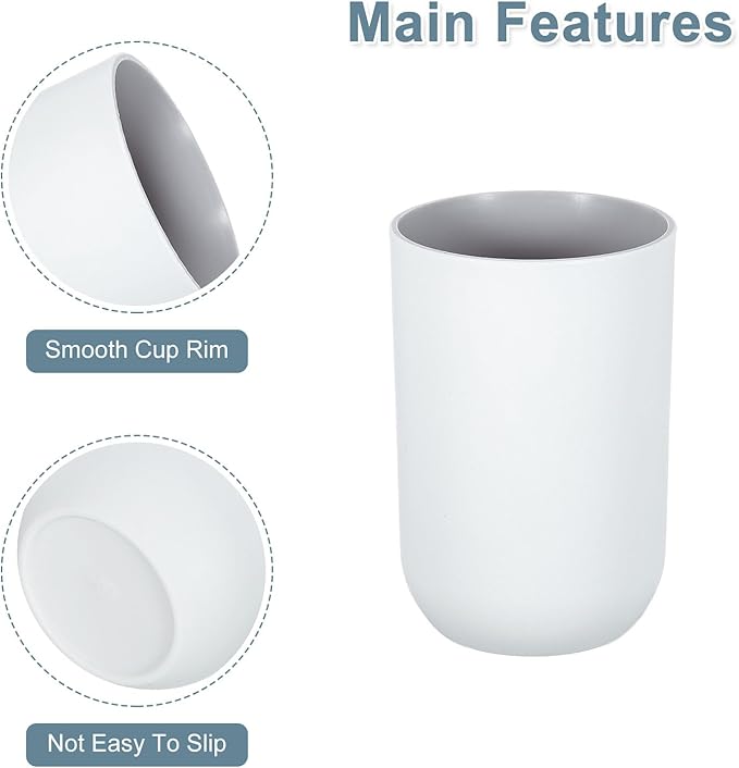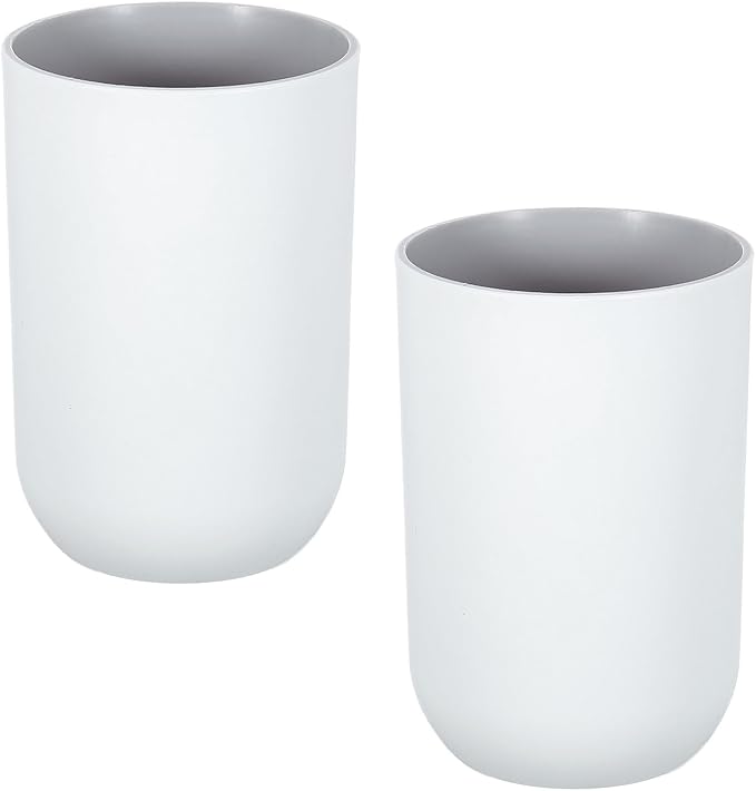 uxcell 2Pcs Plastic Drinking Cups, Double Color Unbreakable Reusable Bathroom Cup Mouthwash Cup Toothbrush Tumbler Holder, Grey