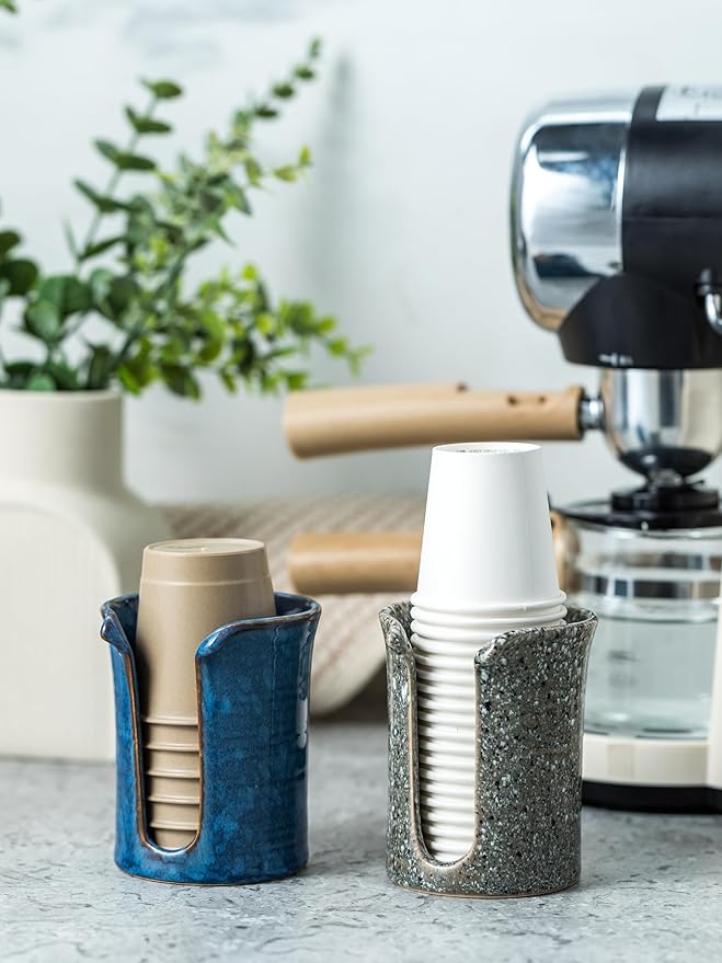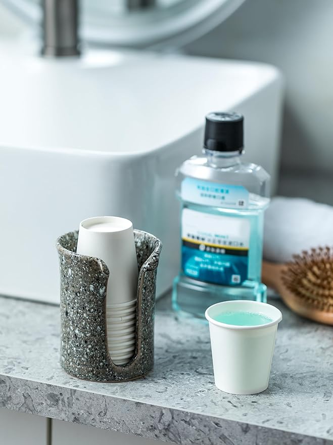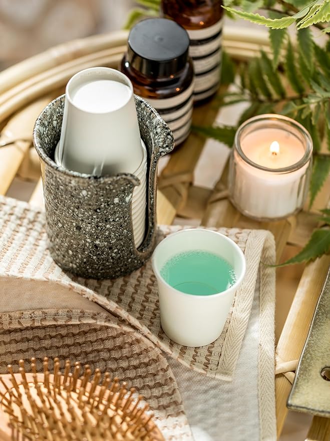 - Handmade Ceramic with Marble Look – This 3 oz bathroom cup dispenser combines a luxurious marble-inspired glaze with the warmth and charm of handcrafted ceramic. Each mouthwash cup holder is uniquely finished, bringing a touch of artisanal style to your countertop