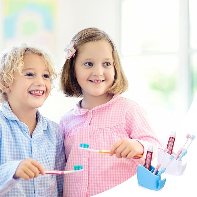 - Toothbrush and Toothpaste Holder Featuring a 2-in-1 design, this holder can accommodate both children's toothbrushes and toothpaste. It is not suitable for adults, as the depth is shallow for adult toothbrushes and toothpaste. Please check the dimensions before purchasing. The package includes one white toothbrush holder and one blue toothbrush holder.
