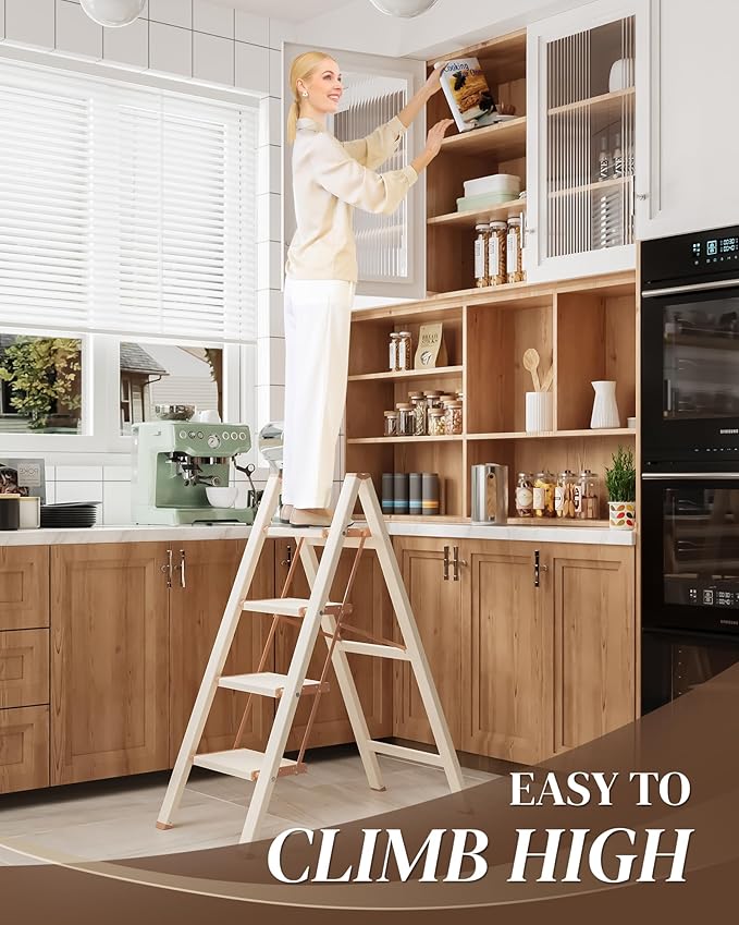 - Multiful Function for Various Tasks: It's essential when you're reaching high shelves in the kitchen, items in the living room. Also, you can stand on our 4 step stool to do home maintenance like hang pictures , clean the window and paint the wall