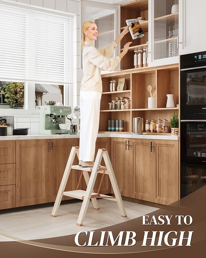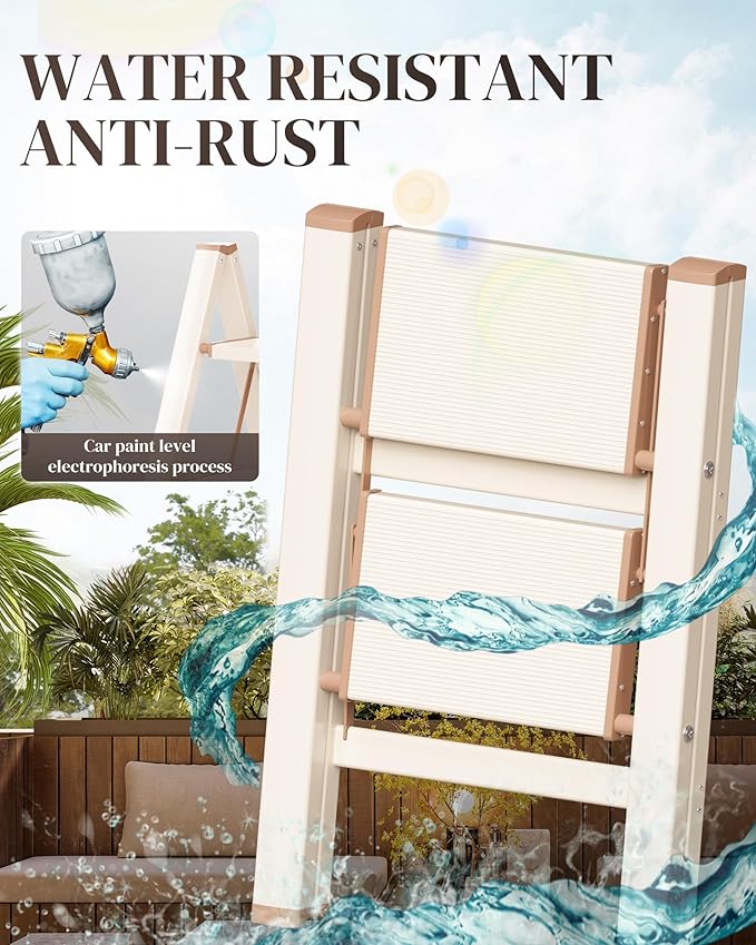 GameGem 2 Step Ladder, Folding Step Stool with Wider Pedal, Anti-Slip Feet & Non Slip Stripes, Aluminum Sturdy Material, 300Lbs Capacity, Elegant Look of Cream Chocolate Better Matches Your Home