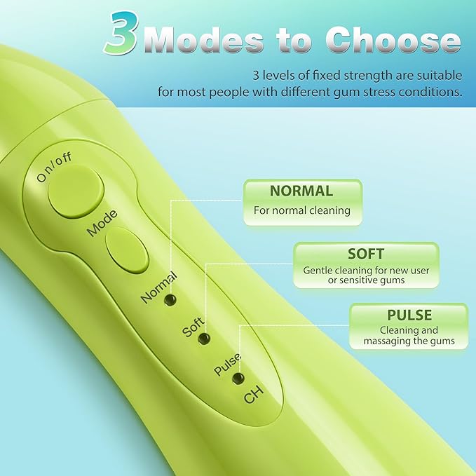 - Professional Equipment — From its waterproof and cordless design, to the 3 modes (normal, soft, pulse) to suit your preference and sensitivities. Please choose Soft mode at the first use. The Tovendor electric water flosser is perfect for the family, both at home and on your travels
