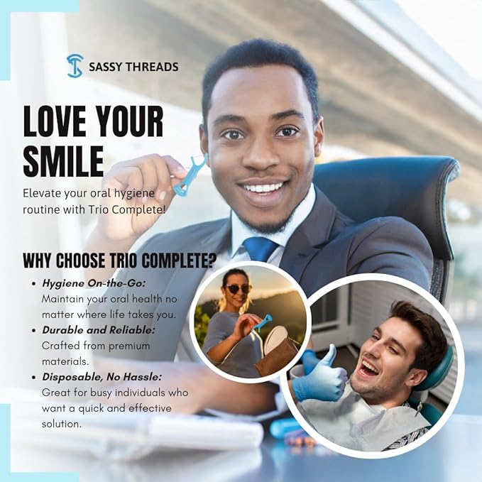 - Complete oral hygiene set: This Trio Dental Care set includes double thread floss, tooth pick, and tongue scraper for a more thorough cleaning experience.