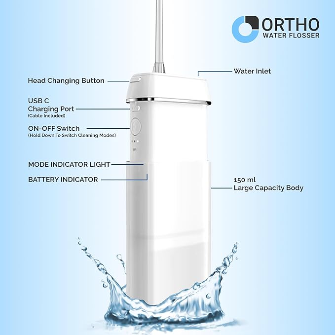 - ๐๐ซ๐ญ๐ก๐จ๐๐จ๐ง๐ญ๐ข๐ ๐๐๐ซ๐ ๐๐๐๐ ๐๐๐ฌ๐ฒ: Ortho Water Flossers for Adults Travel Flosser is designed specifically for those with braces, implants, and crowns, offering a deep clean that traditional flossing can't achieve. Its specialized tips reach areas around orthodontic devices, ensuring thorough plaque removal. This water flosser for braces is a must have for maintaining oral hygiene with braces, preventing gum disease and cavities.