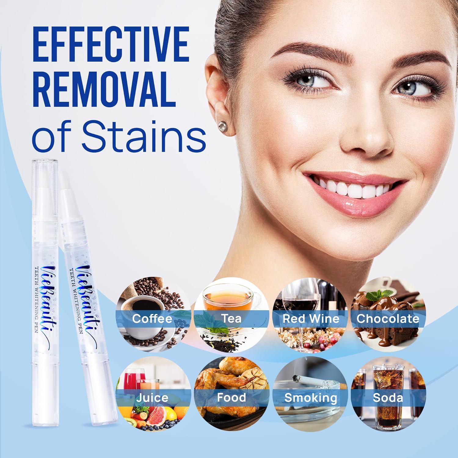 VieBeauti Teeth Whitening Pen (2 Pcs), 20+ Uses, Effective, Painless, No Sensitivity, Travel-Friendly, Easy to Use, Beautiful White Smile, Mint Flavor