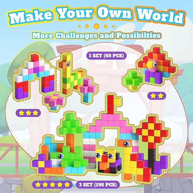 - STEM-Approved Educational Toys: As perfect Montessori learning toys, these magnetic blocks foster key developmental skills through STEM-driven play. They enhance spatial imagination, logical thinking, and fine motor skills, offering a screen-free alternative that helps children learn counting, shapes, and design while having fun