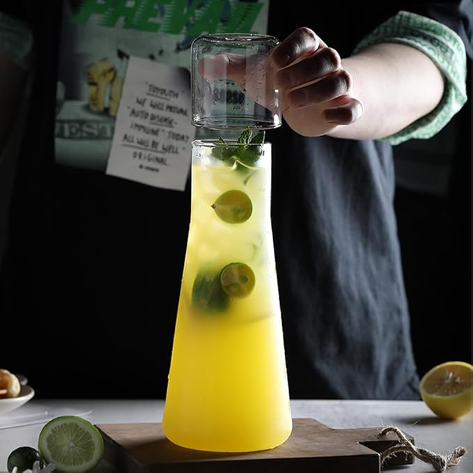 - Elegant Design with Practical Functionality: Featuring a modern, minimalist design, this bedside water carafe set comes with a sealing lid that protects your water from dust , keeping your water throughout the night.
