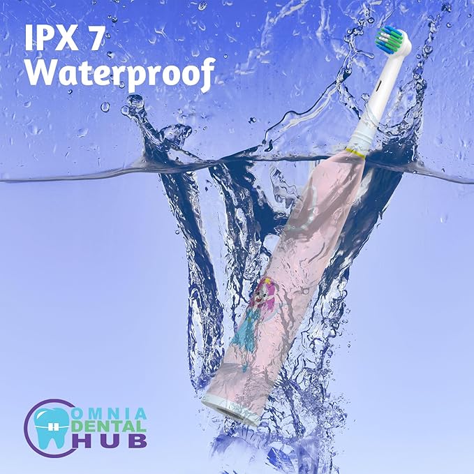 - SAFE AND GENTLE WITH IPX7 WATERPROOF RATING: This electric toothbrush is built to last with an IPX7 waterproof rating, making it safe to use in the shower or rinse under water for easy cleaning. The brush’s waterproof design ensures durability and longevity, providing your child with a reliable, worry-free brushing experience.