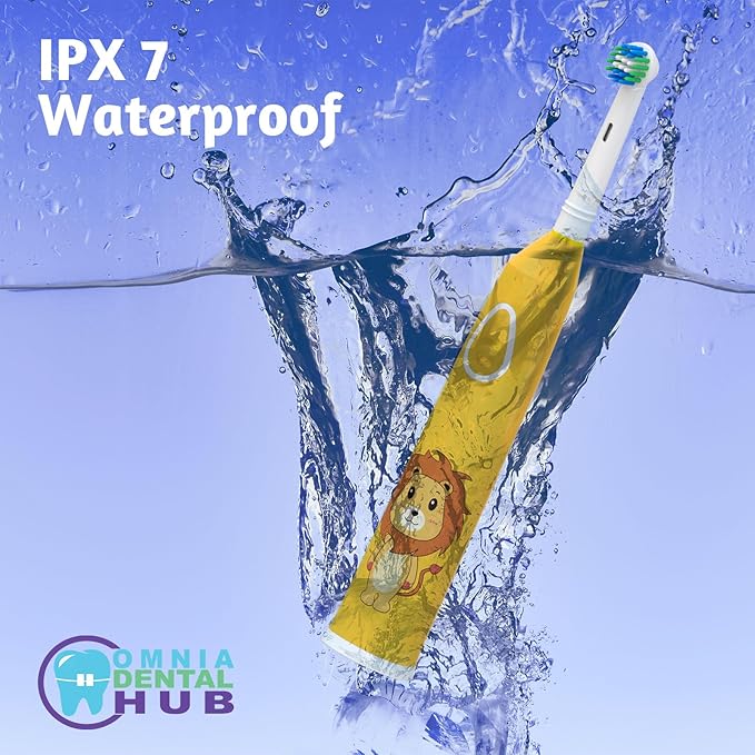 - SAFE AND GENTLE WITH IPX7 WATERPROOF RATING: This electric toothbrush is built to last with an IPX7 waterproof rating, making it safe to use in the shower or rinse under water for easy cleaning. The brush’s waterproof design ensures durability and longevity, providing your child with a reliable, worry-free brushing experience.