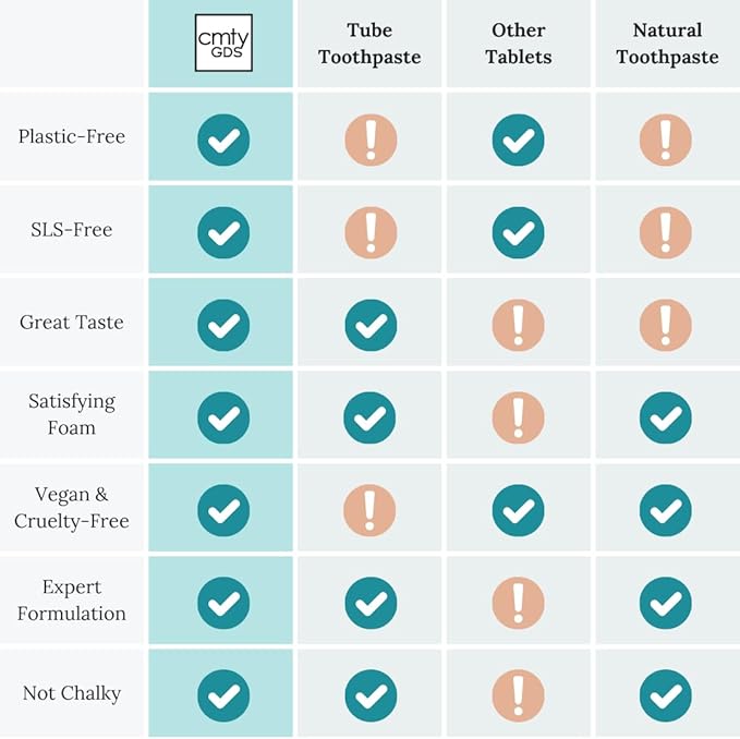 - WHITENS TEETH & FRESHENS BREATH: Community Goods Toothpaste Tablets are made with clean ingredients that remove surface stains to whiten teeth and brighten your smile. Nano-Hydroxyapatite strengthens tooth enamel, xylitol fights unwanted bacteria and aloe vera protects your gums. Meanwhile, icy menthol leaves your breath cool and fresh