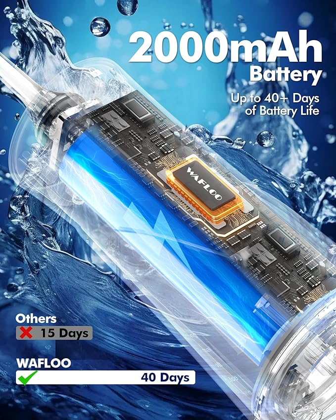 - IPX7 Waterproof: This cordless water flosser is rated IPX7 waterproof, allowing safe use in the shower and easy cleaning. The upgraded motor delivers a more effective dual-stream water flow, outperforming similar products
