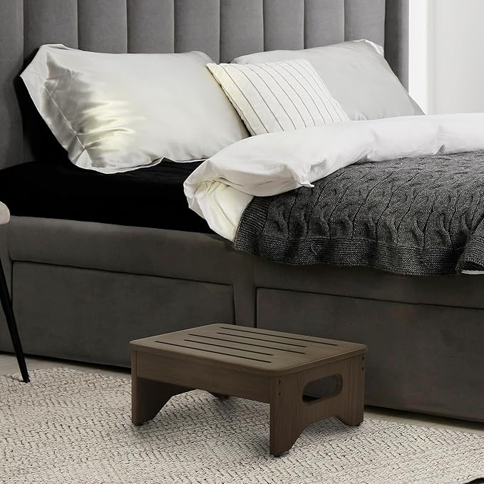 - Elegant Design: Its sleek walnut finish adds a touch of elegance, making it a decorative step stool that complements any room style. Use it as a small foot stool or a bedside step stool, adding functionality and style