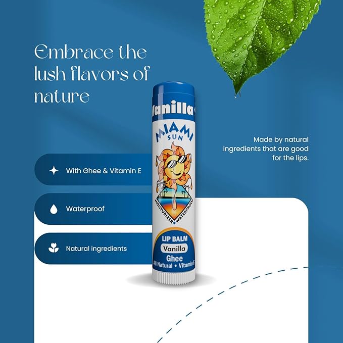 Miami Sun Natural Ghee Lip Balm, Hydrating Lip Treatment with Shea Butter & Beeswax, Organic & Non-Toxic, Best for Dry, Chapped Lips - Moisturizing, Healing, Chemical-Free Care (2 Pack Gift, Vanilla)