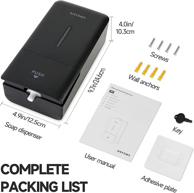 27oz (800 ml) Manual Wall Mounted Soap Dispenser, Ideal for Commercial Bathrooms Restaurants Hotels, Use with Liquid Hand Soap Shampoo, ABS Black