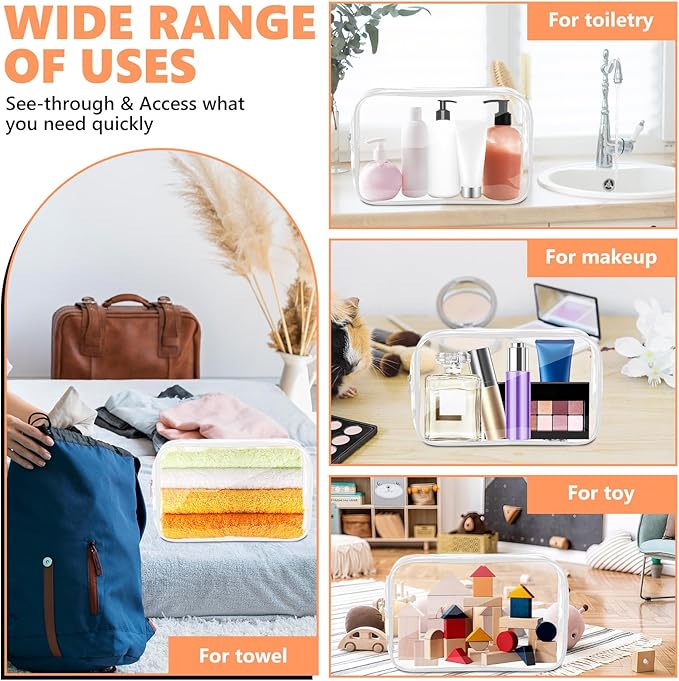 - TSA APPROVED:The TSA certified clear toiletry bag strictly follow 3-1-1 airport regulations, so you don't have to worry about getting through airport security. All makeup bags are made of clear PVC material, so you can see the contents of the bag at a glance, and are BPA-free, safe and durable.