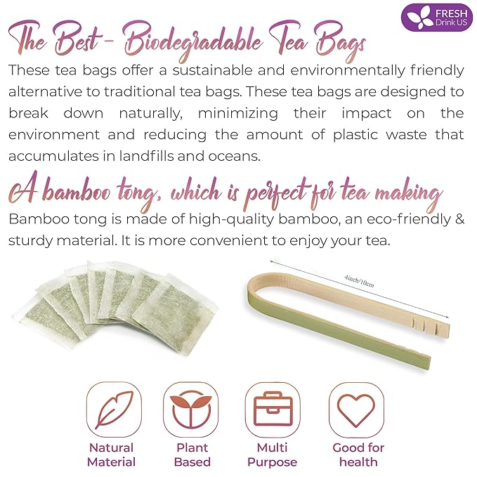 - ☘️ BIODEGRADABLE TEA BAG - NATURAL MATERIAL: The tea bags are made of natural corn fiber, which is friendly for the environment. No Strings. No Wrapped. No Staples. No Adhesive. No Bleach. No Dyes - 100% Safety.