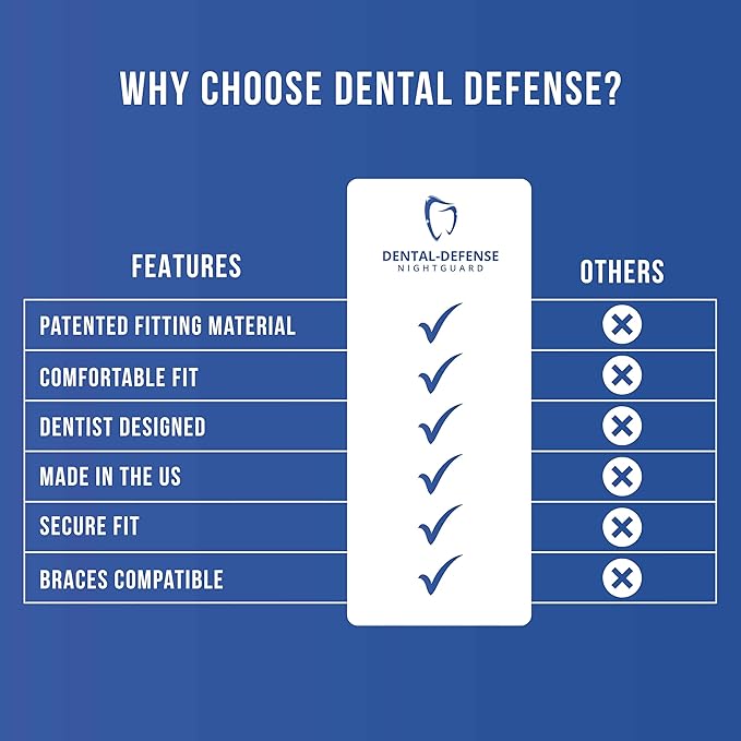 - CUSTOMIZED FIT: Dental Defense Night Guard molds perfectly to your teeth, offering a fit as unique as your teeth are. Engineered with the precision of a custom dental guard, it ensures a snug and secure fit throughout the night, delivering comfort that lasts.