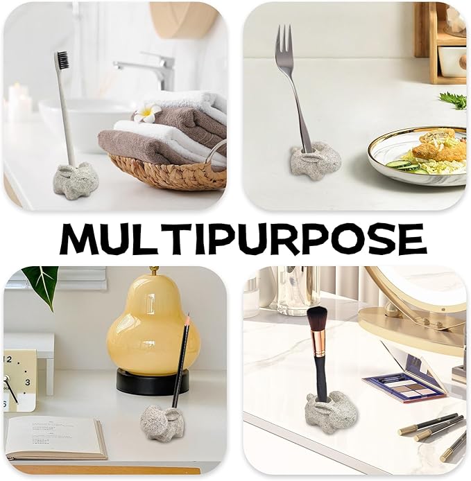 Cute Cartoon Toothbrush Stand, Mini Animal Single Tooth Brush Holder, Fun Resin Pen Pencil Holder for Bathroom Office Living Room Kitchen (Rabbit)