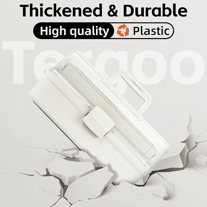 - Large capacity: Dimensions 14.5”L×7.5”W×7”H. 3-Layer plastic storage box with 2 folding trays and 6 dividers inside. Reasonable spatial planning, with each layer storing items of different sizes.