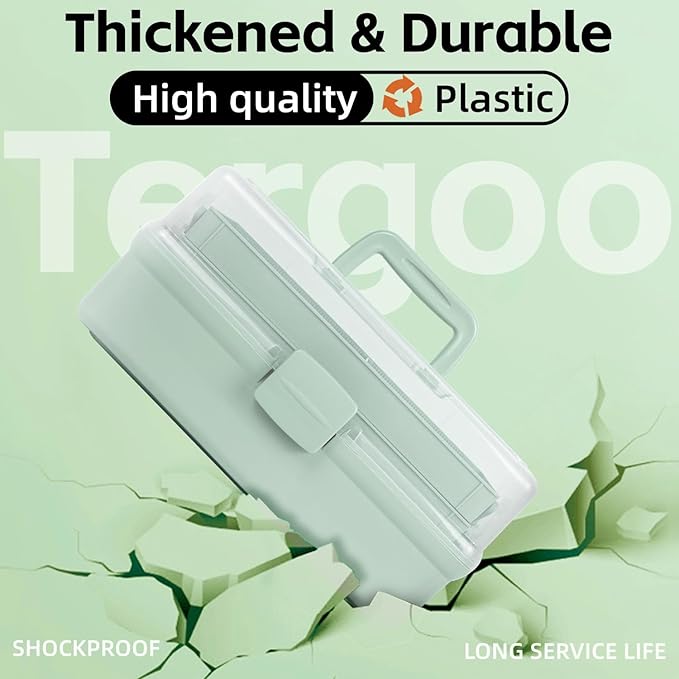 12.5in 3-Layer Multipurpose Craft Organizers and Storage with Adjustable Dividers, Portable Tackle Box, Folding Art & Craft Case for Medicine, Tool, Sewing Organizer (Haze Green)