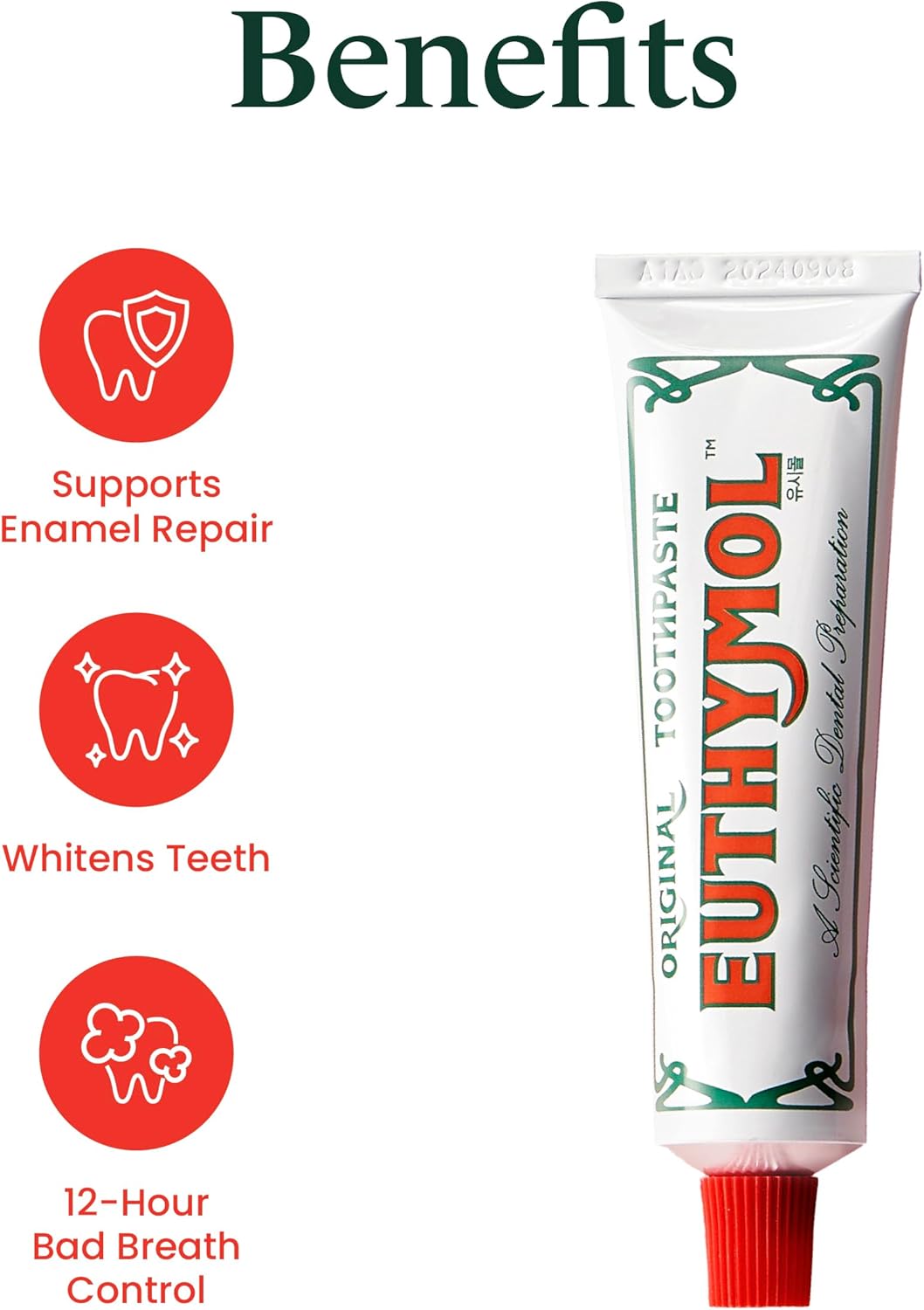 - EUTHYMOL ORIGINAL TOOTHPASTE TRAVEL SET (1.4fl oz*3ea, Pack of 3) - Immerse yourself in the bright pink brilliance of our fluoride-free Euthymol toothpaste, infused with potent eucalyptus extract and thymol oil from thyme herb. Expertly formulated for dental calcium supplementation, this paste boasts a 12-hour bad breath control ability.