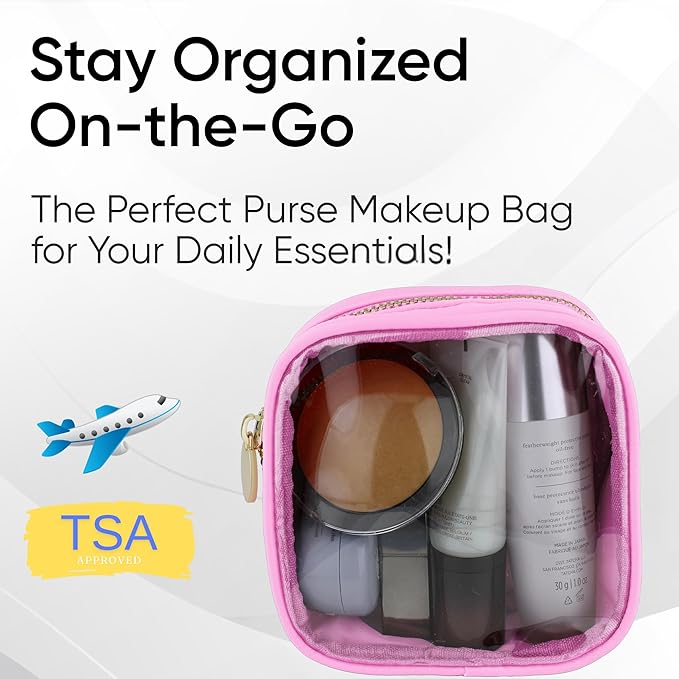 - PATCHES FRIENDLY: The clear toiletry for purse material allows you to easily apply your favorite patches and fit all your travel-size toiletries.