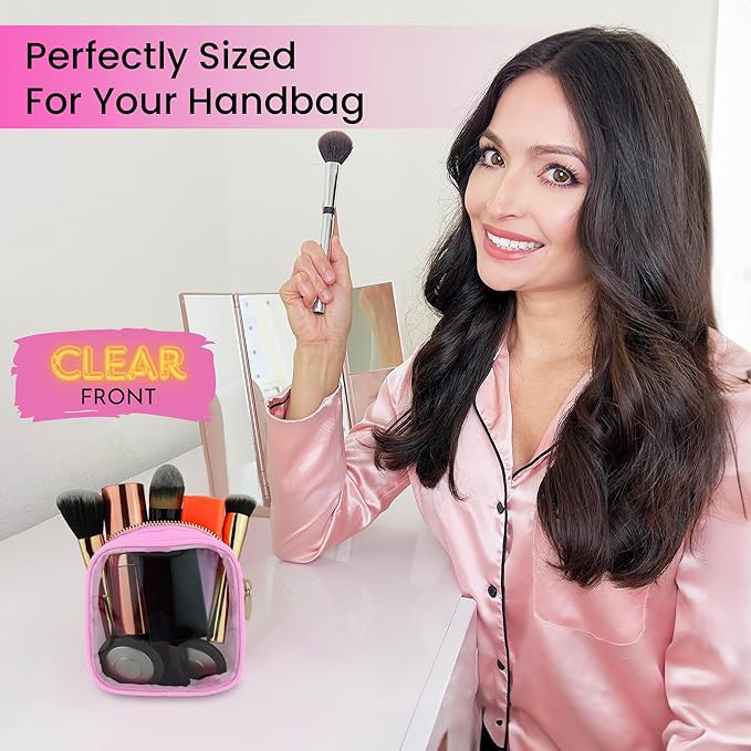 DANCOUR Clear Mini Makeup Bag for Purse Small Cosmetic Pouch Travel Organizer Transparent Toiletry Case Mini Pouch Light Pink