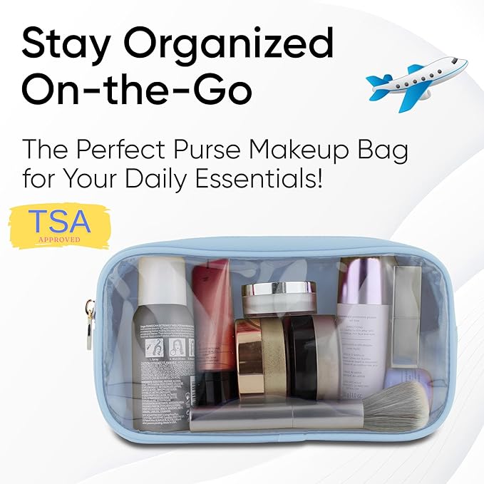 Small Clear Makeup Bag – Mini Pouch for Purse, Cosmetic Travel Case, Clear Cosmetic Bag, Light Blue Mini Makeup Bag, Compact Pouch for Purse
