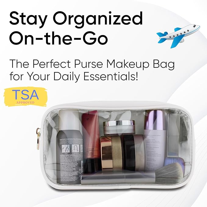 - PATCHES FRIENDLY: The clear toiletry for purse material allows you to easily apply your favorite patches and fit all your travel-size toiletries.