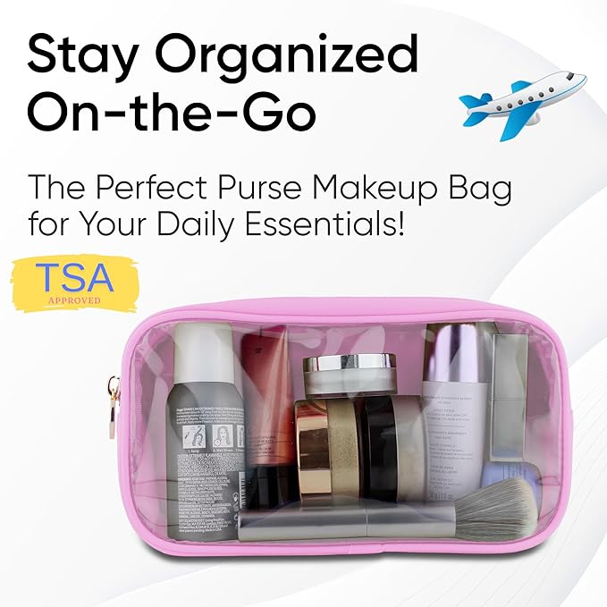 - PATCHES FRIENDLY: The clear toiletry for purse material allows you to easily apply your favorite patches and fit all your travel-size toiletries.