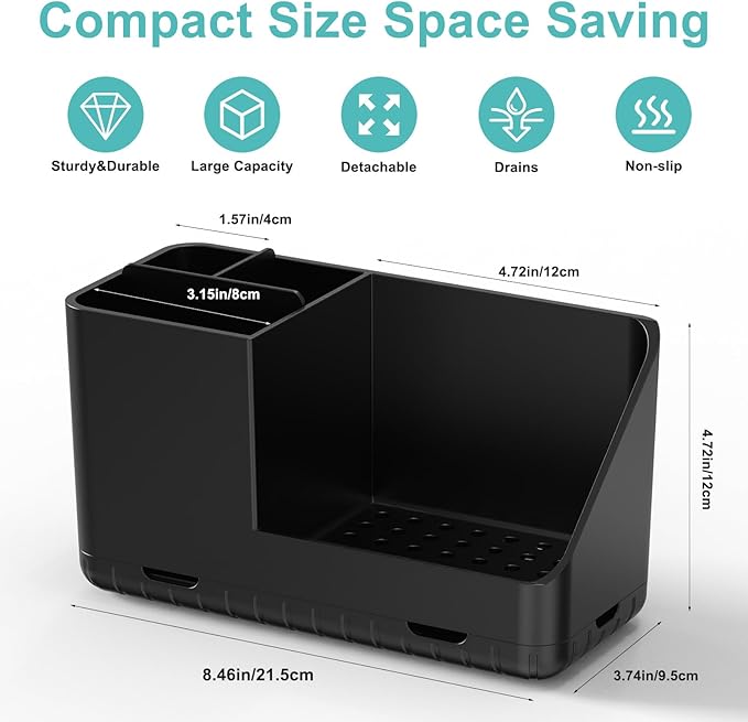 - DRAINAGE DESIGN: The bottom of our bathroom toothbrush holder is made with compartment heightening design and designed with many small holes for better drainage and breathability, avoiding moisture at the bottom of electric toothbrushes, toothpaste, and other bathroom items. Well ventilated to keep your bathroom countertop dry and tidy.