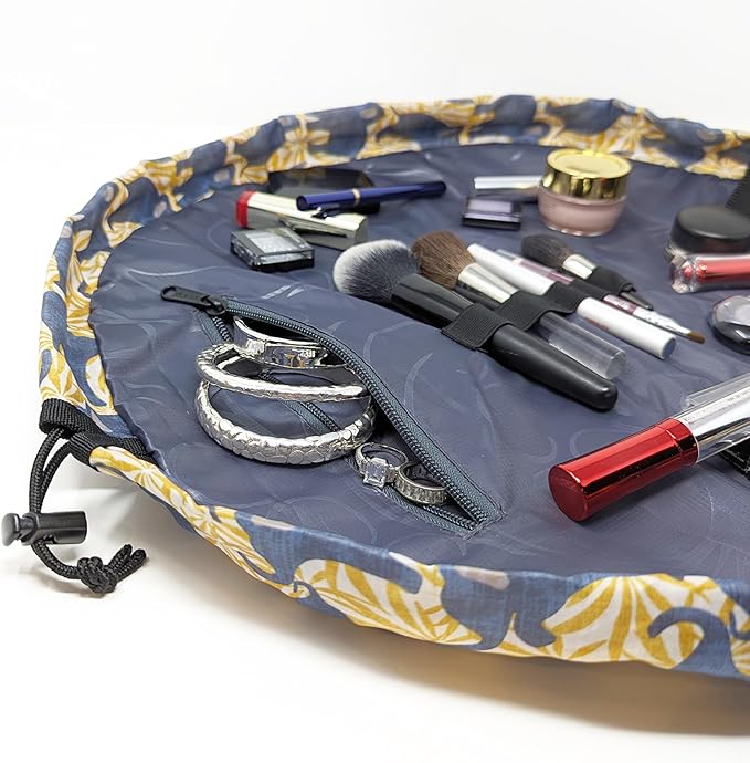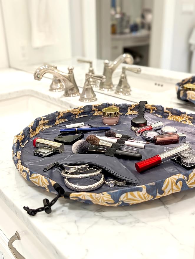 - FAST CLEANUP, NO MESS: Lay flat to instantly access all your makeup, then cinch closed for effortless cleanup – no more digging through cluttered bags or bathroom counters.