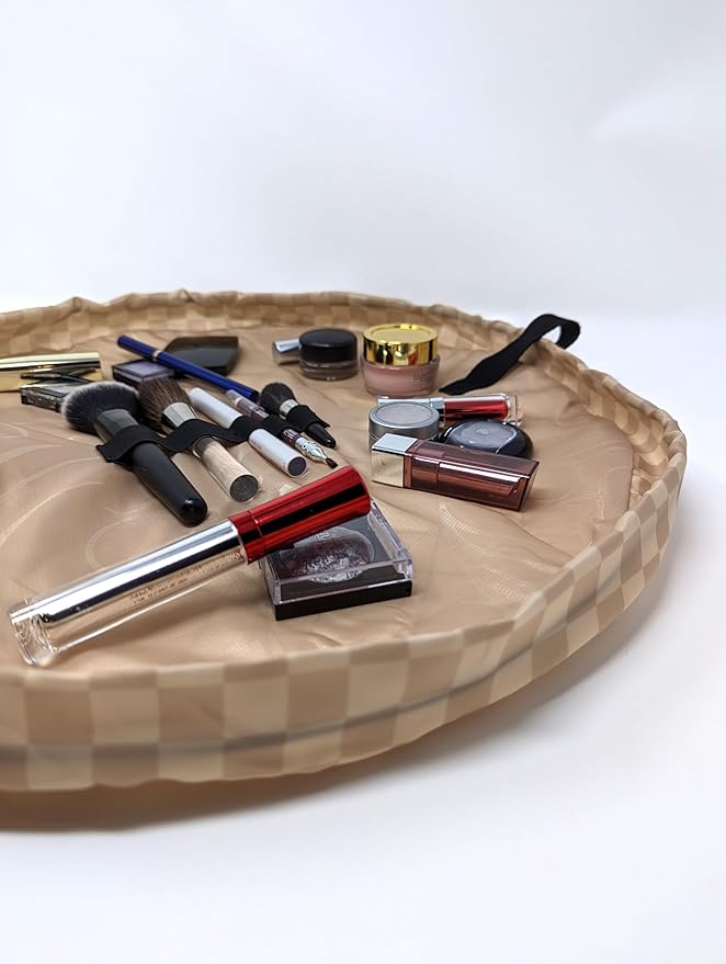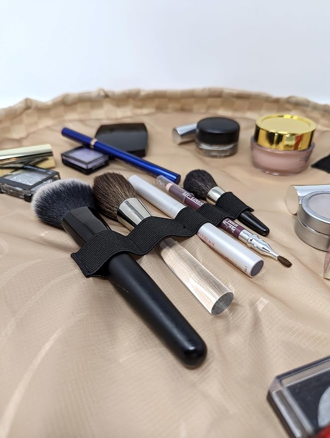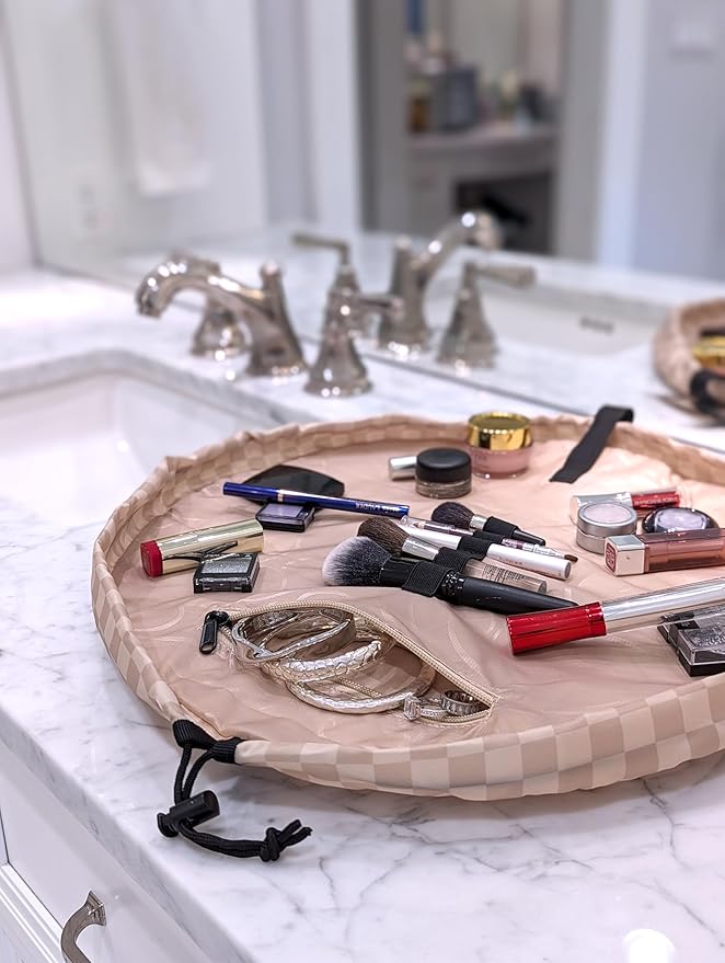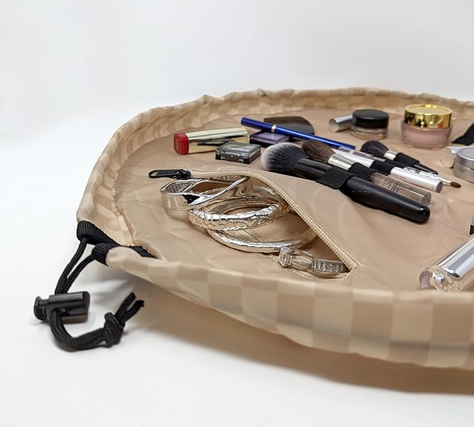 - FAST CLEANUP, NO MESS: Lay flat to instantly access all your makeup, then cinch closed for effortless cleanup – no more digging through cluttered bags or bathroom counters.