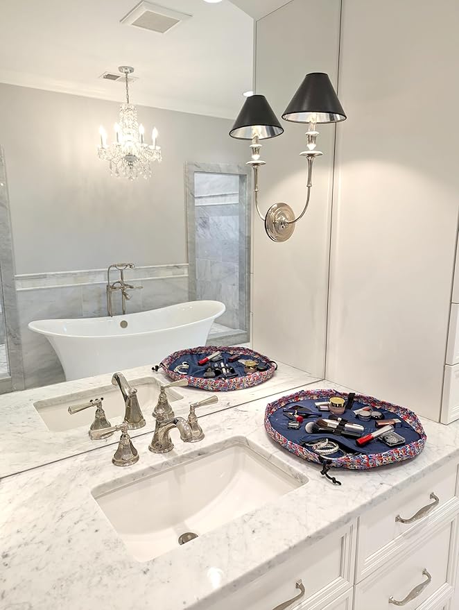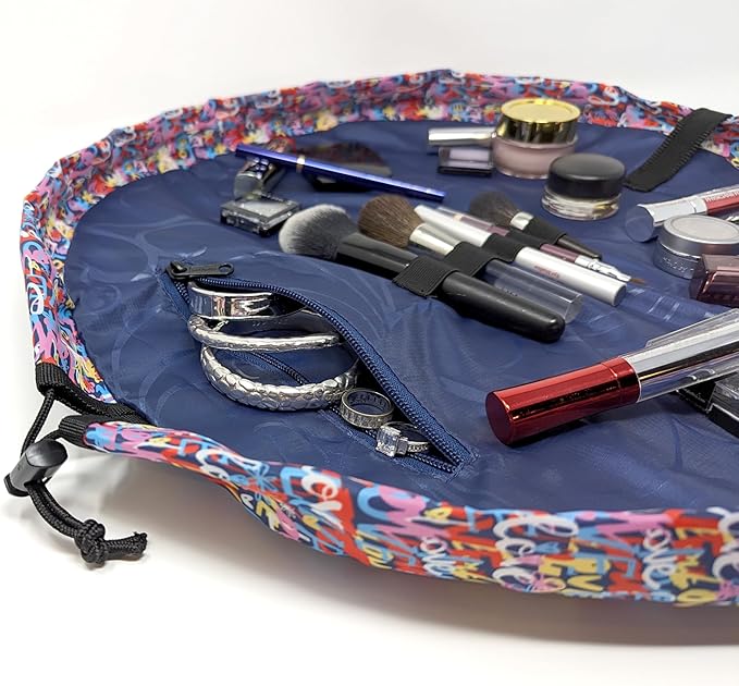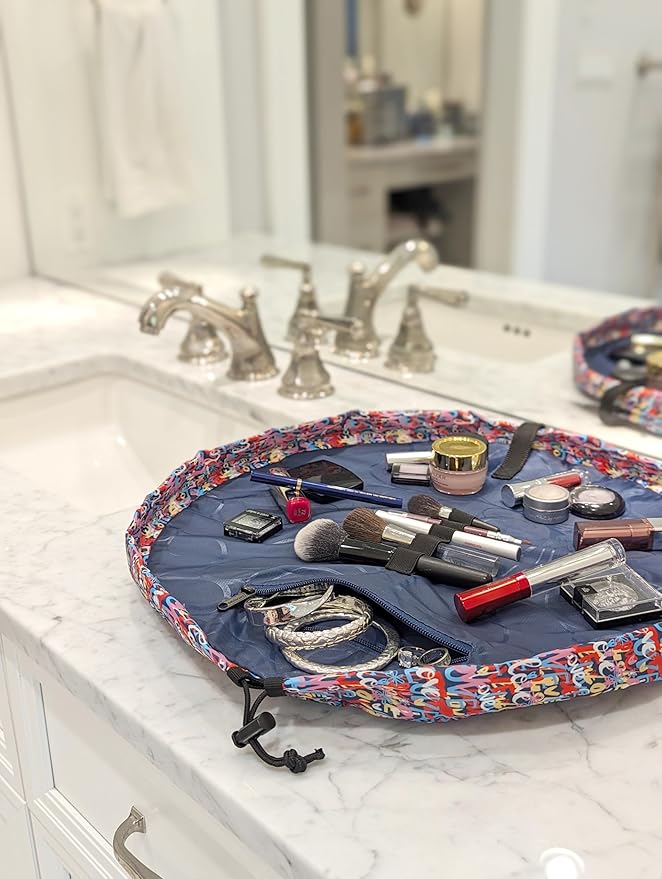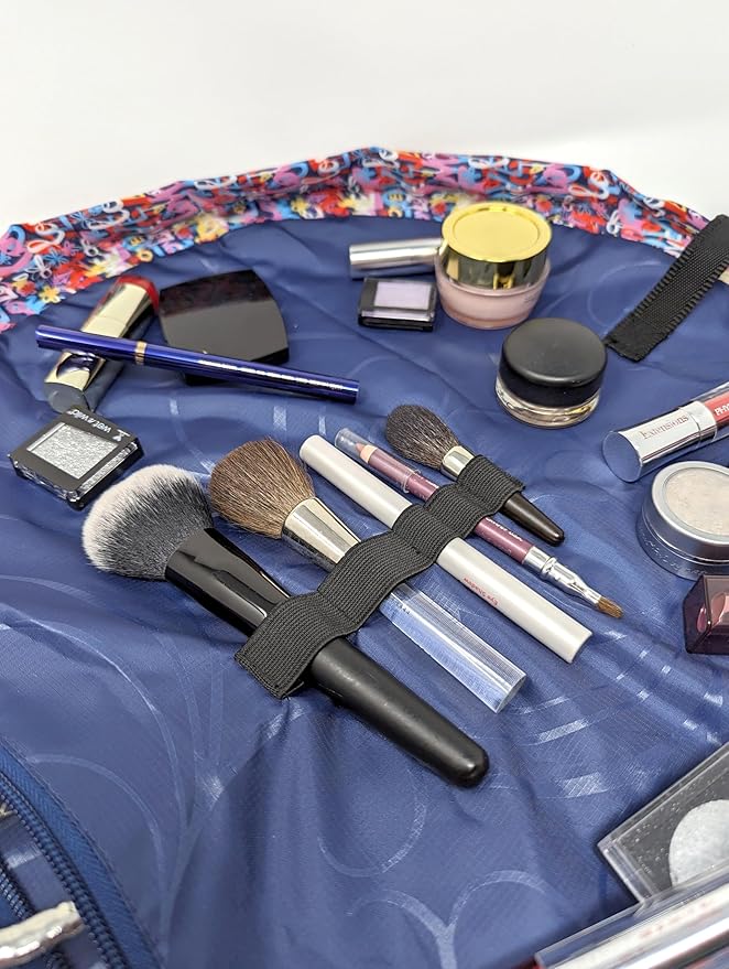 - FAST CLEANUP, NO MESS: Lay flat to instantly access all your makeup, then cinch closed for effortless cleanup – no more digging through cluttered bags or bathroom counters.