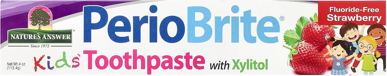 Nature's Answer Periobrite Kids Toothpaste 4 Ounce - Vegetarian, Non GMO, Gluten Free, Fluoride Free, with Xylitol, Natural Strawberry Flavor - Supports Oral Wellness for Kids, Children, Toddlers