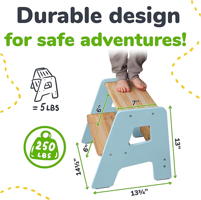 - HOLDS ADULT WEIGHT, BUILT TO LAST - Though crafted for children, this wooden step stool supports up to 250 lbs. Use it as a step stool for toddlers or a sturdy helper for adults around the home.