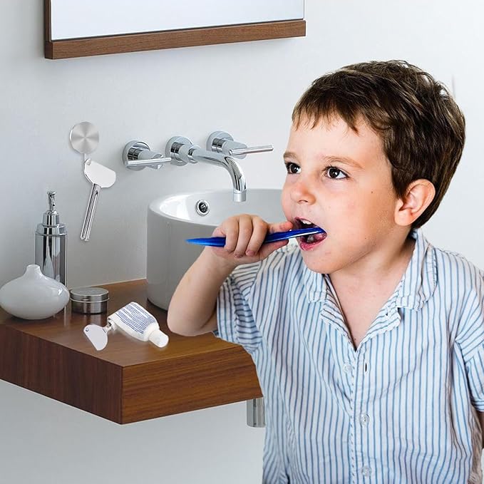 - 【Save time and money】No more struggling to pinch toothpaste tubes, the metal toothpaste squeezer dispenser is a must-have life tool, the tube wringer is safe to use for any age group on
