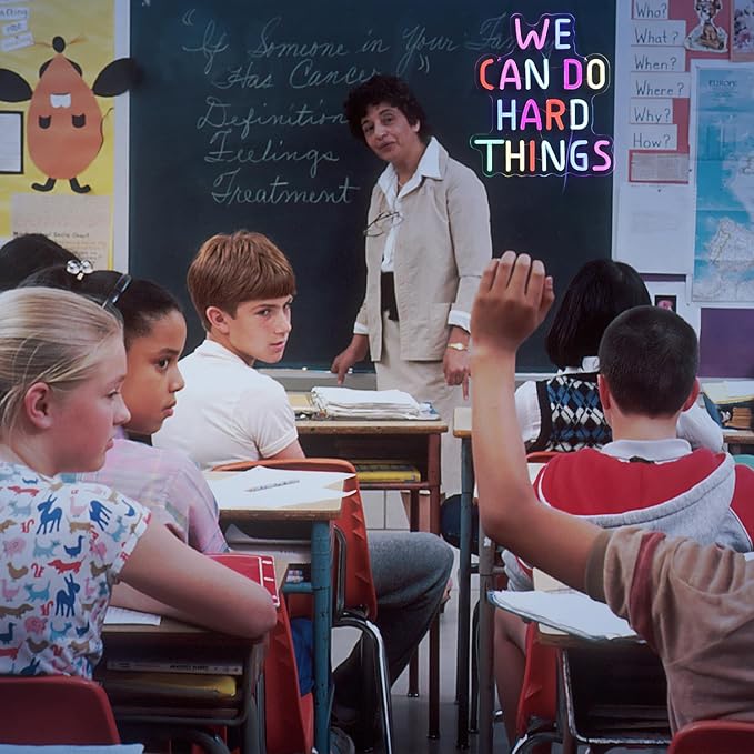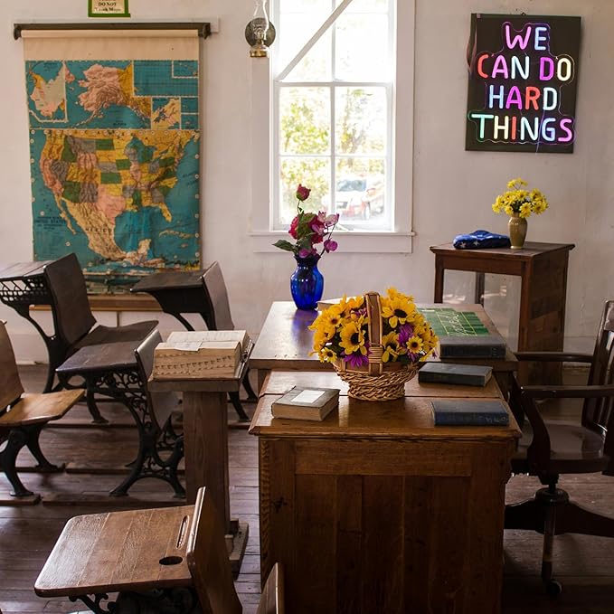 We Can Do Hard Things Neon Sign Classroom Decor Inclusive Decoration Welcome Gift Teacher Present Wall Sign for Primary Schools and Kindergartens Birthday (11.4×12.8)
