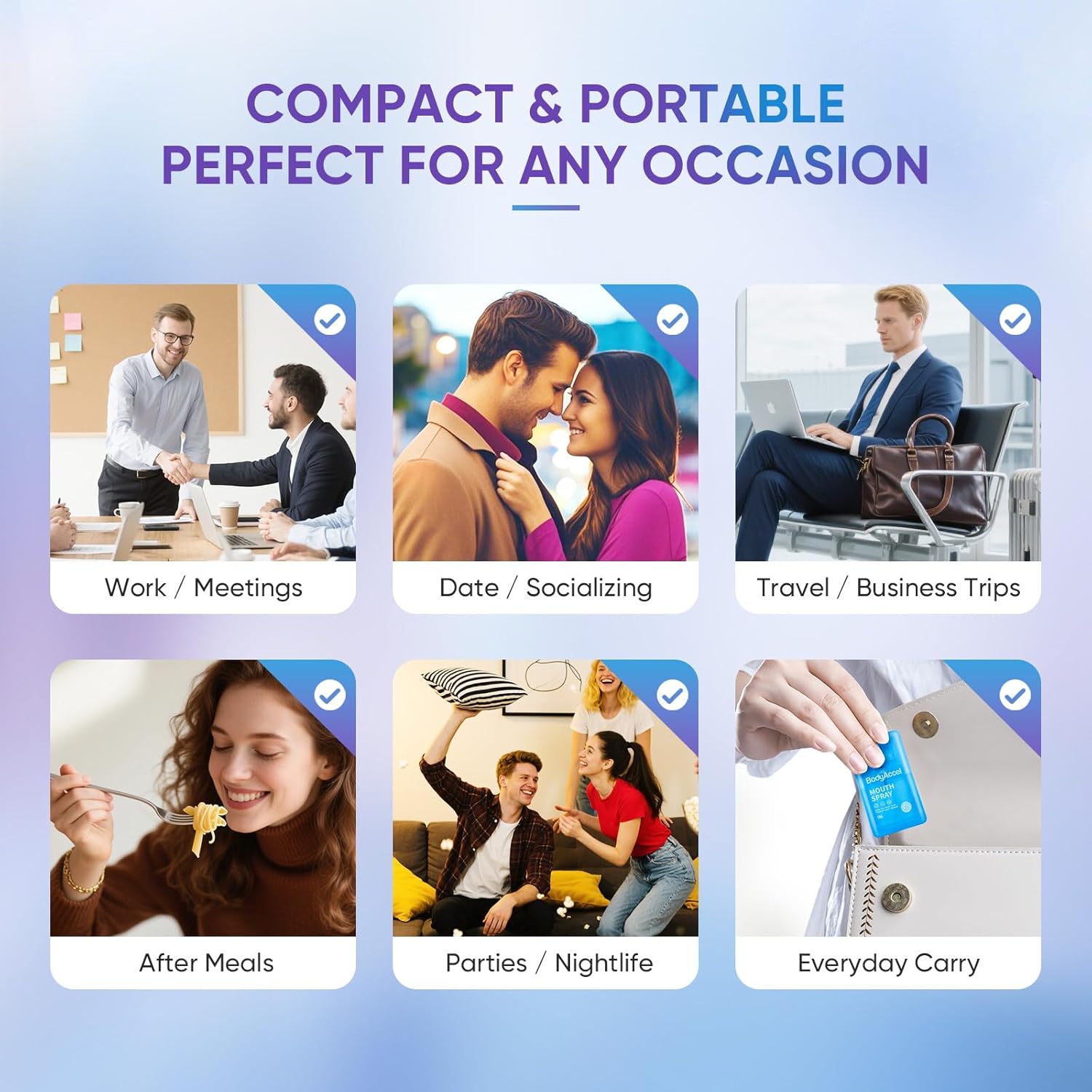 - Portable Design: Slim card format makes it lightweight and easy to carry, taking up minimal space. Perfect for on-the-go instant fresh breath touch ups.