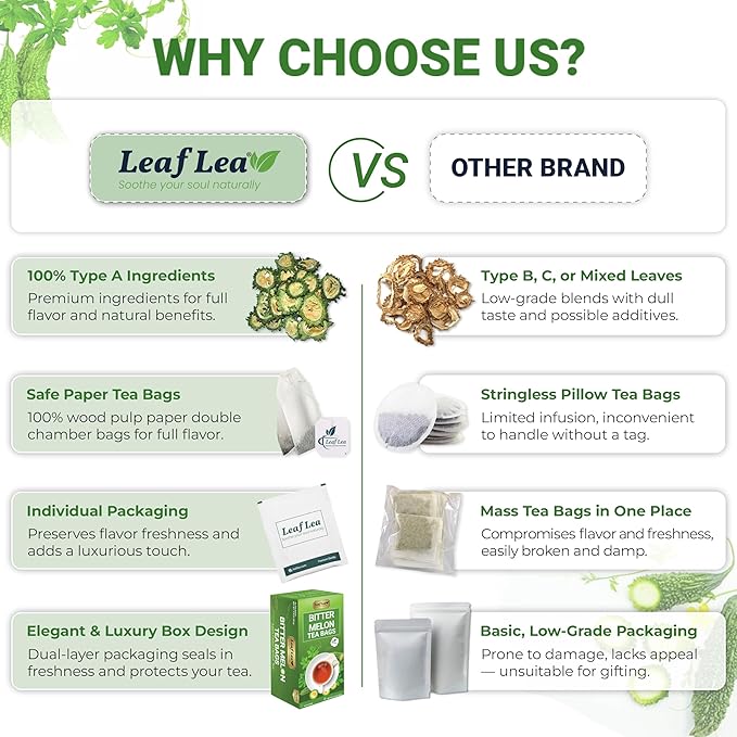 LeafLea Natural Bitter Melon Tea Bags, 40 Cundeamor Herbal Tea Bags – Melon Amargo Gohyah Fruit Tea | Wellness & Digestion Support | Caffeine-Free, Non-GMO, Sugar-Free, Vegan