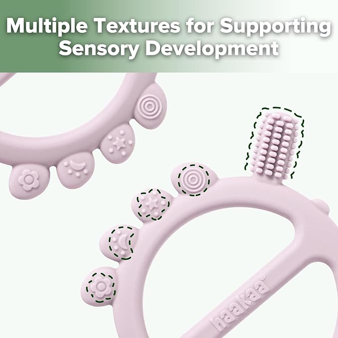- ๐๐ฅ๐ฅ-๐๐ซ๐จ๐ฎ๐ง๐ ๐๐๐๐ญ๐ก๐ข๐ง๐ ๐ฐ๐ข๐ญ๐ก ๐๐ง๐ข๐ช๐ฎ๐ ๐๐๐ฑ๐ญ๐ฎ๐ซ๐๐ฌ๏ผWith gentle bristles and varied textures, this teether massages front and back gums for full relief. For added comfort, cool it in the fridge or freezer.
