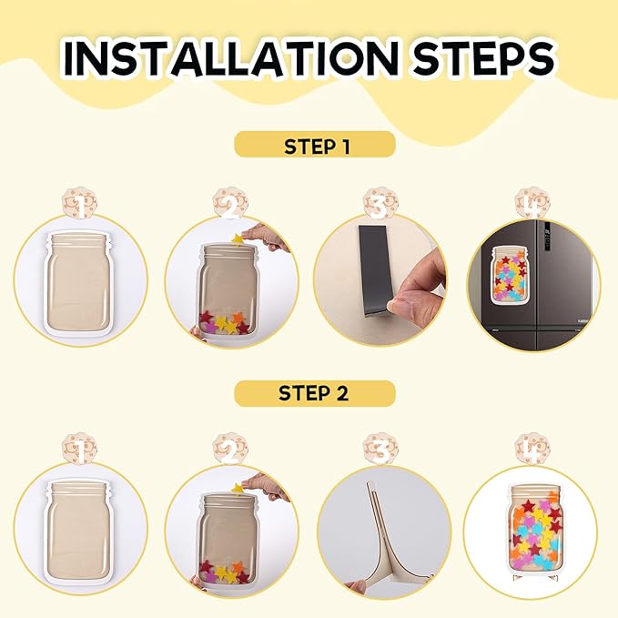 • High Quality Material:The toddler reward jar is made of wood and acrylic, which is sturdy and durable, can be used for a long time, is not easy to wear or crack, and will not cause harm to the human body. It comes with a magnetic strip, which can not only be placed on the stand, but also can be attached to the blackboard or refrigerator. The cute and fashionable design is very popular with children.Note that there is a protective film.