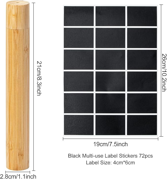 Yeeco 2 Pcs Portable Bamboo Toothbrush Case, Wooden Toothbrush Covers Storage Container Reusable Toothbrush Travel Holder Sustainable for Trip Camping Home Travelling Attach 4 Pcs Sticky Label